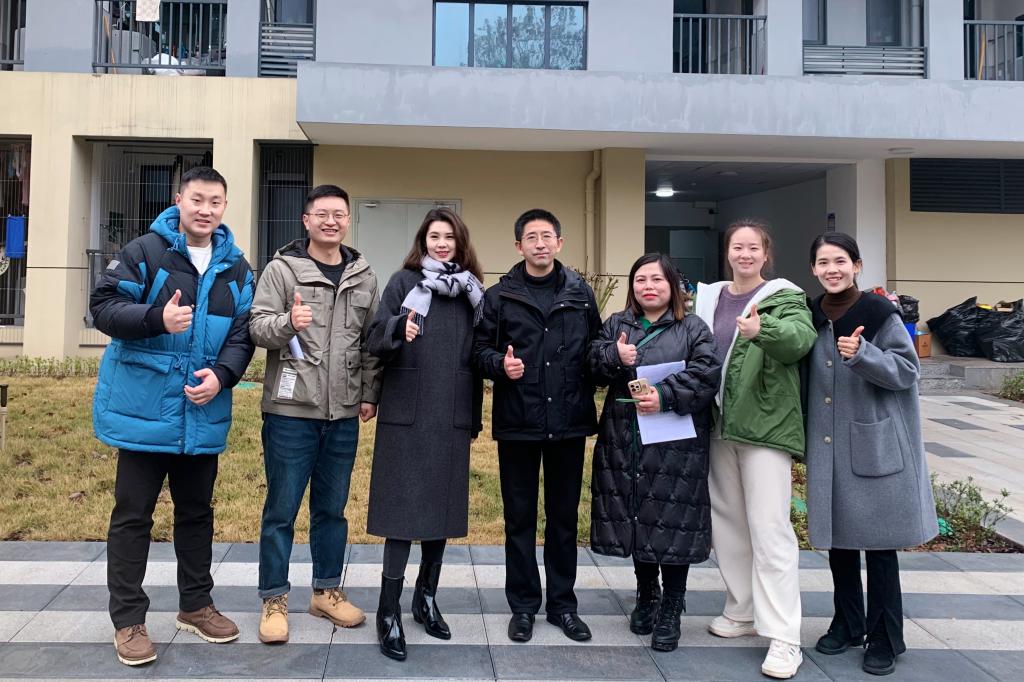 图1:学院党总支书记张海涛(左四)、副书记唐珍妮(左三)带领全体辅导员走访学生宿舍