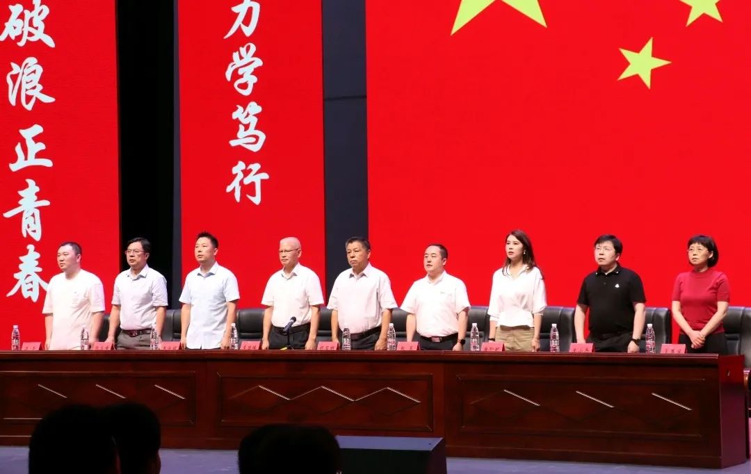 典礼伊始,全体起立,精神饱满,庄严肃穆,奏唱国歌。