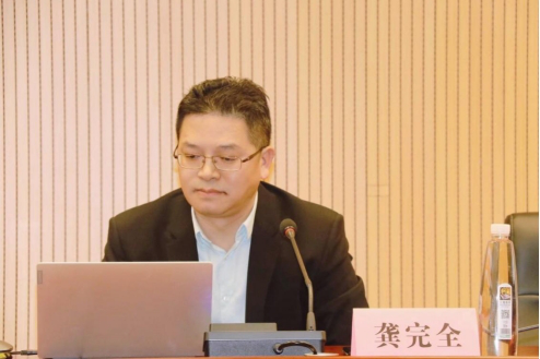 湖南大学党委委员、校学生指导委员会办公室主任、党委学生工作部部长、武装部部长龚完全作报告