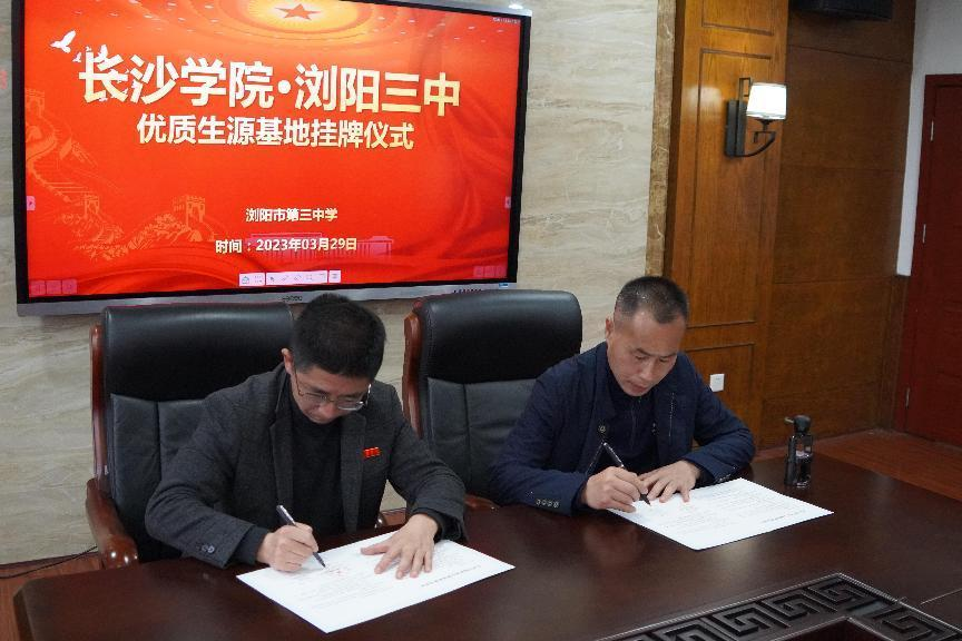 随后,双方与会领导签署了优质生源基地合作协议,张海涛书记代表学校为浏阳市第三中学授予“奈飞工厂