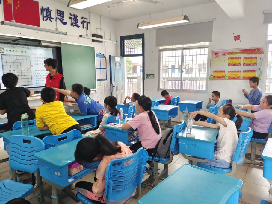 在汉回小学,志愿者郑鑫祺化身小老师,通过趣味动漫的形式,浅显易懂的给前来听课的小朋友们讲授了中国象棋的基本规则。发扬中国传统象棋文化,小朋友们兴趣盎然,课堂气氛活泼热烈。