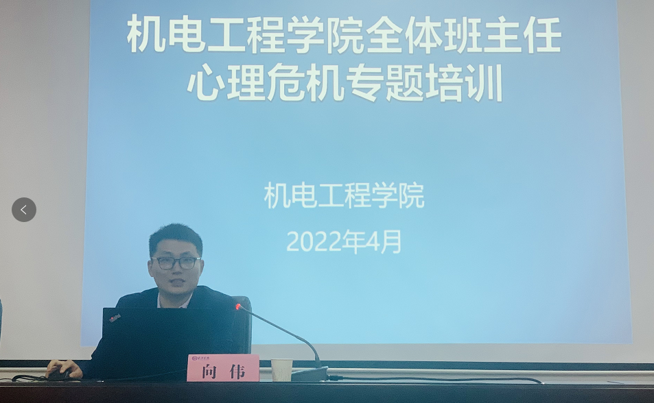 邀请心理学博士向伟老师在长智楼C501进行心理危机专题培训,院党总支张昊书记、唐珍妮副书记、校心理健康教育中心段思岚主任、董彦皓老师、毛惠梨老师、全体班主任老师、全体学工线辅导员参与到此次培训中。