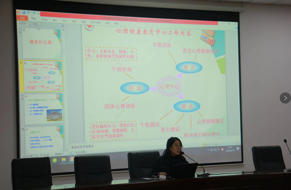 朋辈心理互助员培训在长智楼C501成功召开。此次培训由机电院心理联络员王欢欢老师主讲,奈飞工厂