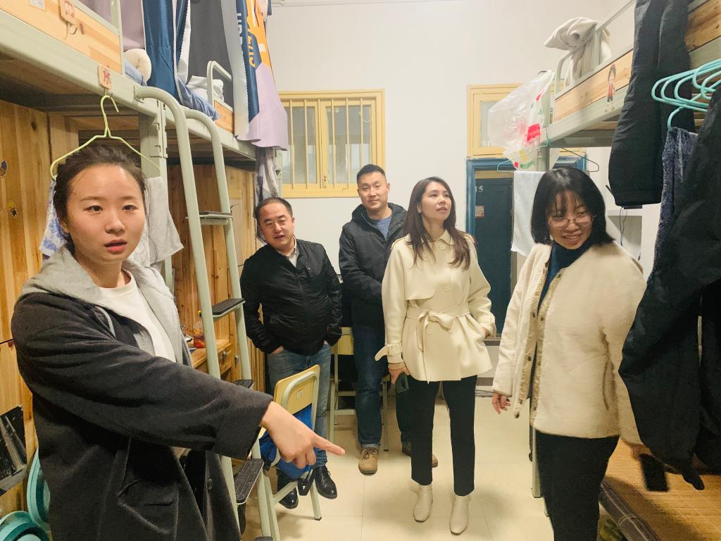 党总支书记张昊、副书记唐珍妮带领全体辅导员及学生干部对学院四个年级共计287间宿舍进行了全面检查。
