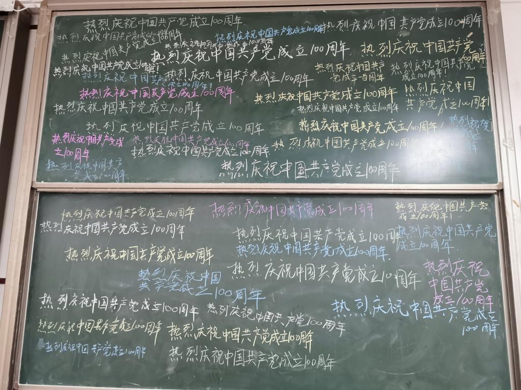 欢乐喜庆的庆祝氛围和铿锵有声的习近平总书记讲话让现场的师生们热血沸腾,黑板上写满了“热烈庆祝中国共产党成立一百周年”的生日祝福,现场不时爆发阵阵掌声。奈飞工厂