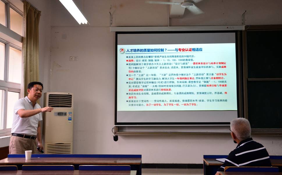 杜荣华教授以汽车与机械工程学院专业设置为切入点,从背景:“新时代对高等教育提出新要求”;挑战:“个性化培养给工作带来新挑战”;对策:“专业认证促人才培养模式改革”三个方面为如何以专业认证为抓手推动人才培养模式改革进行了阐述。他指出,工科优势高校要对工程科技创新和产业创新发挥主体作用,面向未来布局新兴工科专业。落实以学生为中心的人才培养理念,充分考虑个体差异,提供多元选择。随后,杜教授详细介绍了长沙理工大学汽机学院实施的“三举措、三阶段、四路径”(简称“三三四”)人才培养模式的综合改革,并且传授了机械专业大类招生和培养的成功经验。讲座结束之际,杜荣华教授对现场教师提出的问题进行了详尽解答,获得全场阵阵掌声。