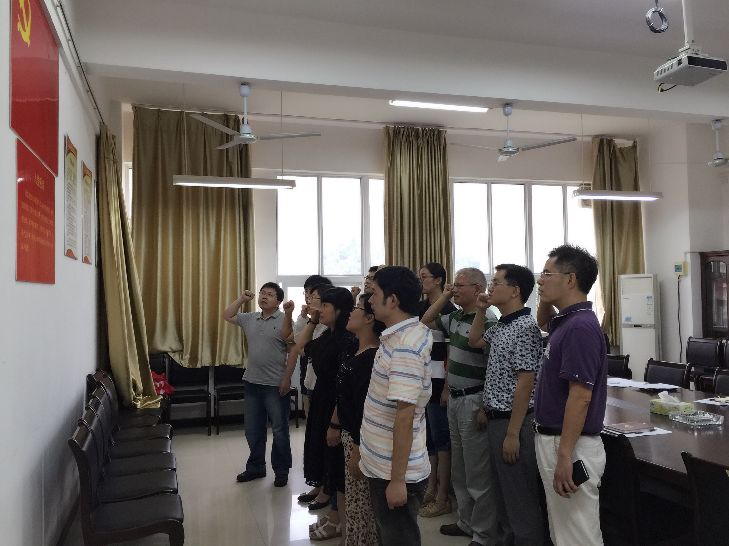 各支部书记针对本支部上半年的工作进行对照检查,针对问题提出整改措施。党员们在交流讨论的过程中,都认为党支部组织生活越来越严格、规范,通过集中学习和党课等形式,大家进一步增强“四个意识”,丰富了理论知识。同时,党员们也就支部建设、党员作用发挥、自身存在的问题等进行了批评与自我批评。包括今年新发展的学生党员在内,所有党员均面向党旗,重温了入党誓词。