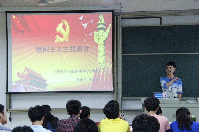 今年是纪念中国人民抗日战争暨反法西斯战争胜利70周年,为弘扬爱国主义思想, 5月24日晚,机电工程系、土木建筑工程系关工委在理工楼C区509联合举办了爱国主义主题演讲比赛。系部二级关工委主任丑利明、张小平老师,系部总支副书记唐珍妮、盛旺及辅导员老师等到比赛现场进行指导并担任评委。