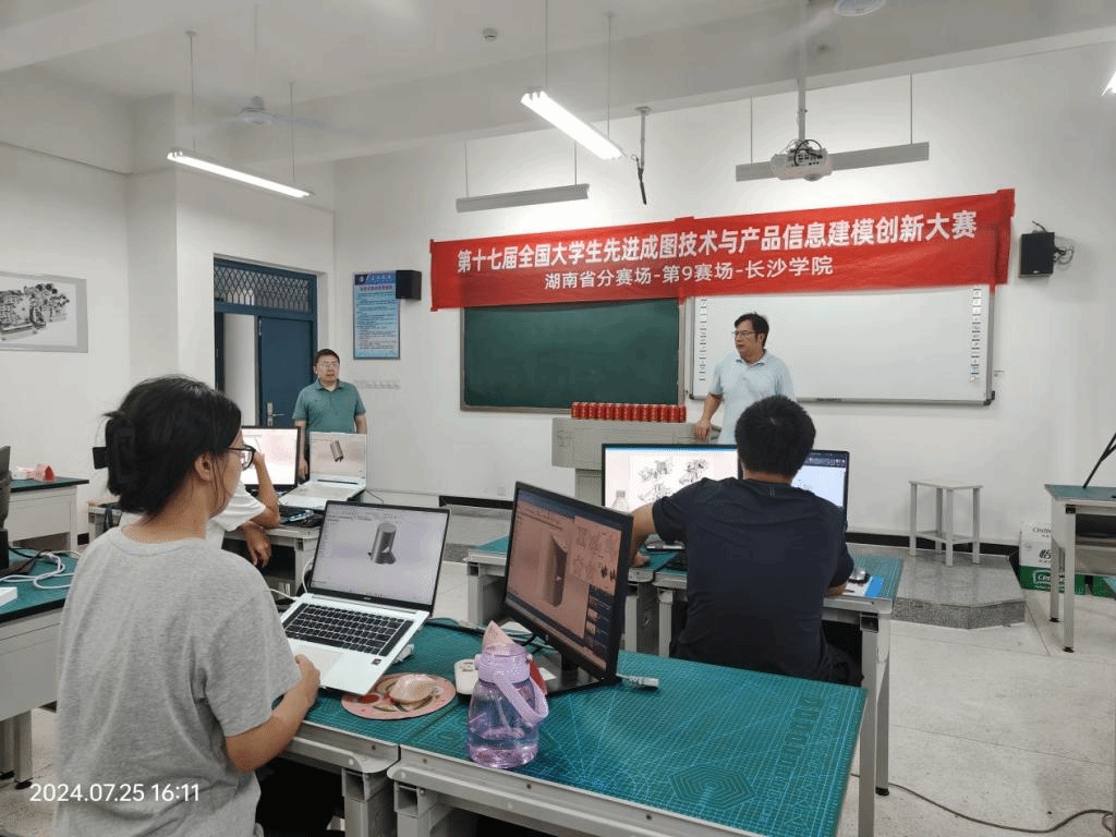 先进成图技术与产品信息建模创新大赛(机械类),吸引了近400名学生参与。经过严格选拔,最终有50名选手脱颖而出,代表我校参加省级比赛。参赛选手们积极备战,勤奋训练,机电学院张高峰院长、庞小兵副院长多次亲临训练赛场鼓励看望学生(图3),最终参赛团队在全国众多竞争者中崭露头角,取得了优异的成绩。这不仅展示了我校学生扎实的专业技能,也彰显了在新工科背景下,我校“以赛促教,以赛促学,以赛促改”的教育理念和显著成效,为我校应用型创新人才的培养注入了新的动力。