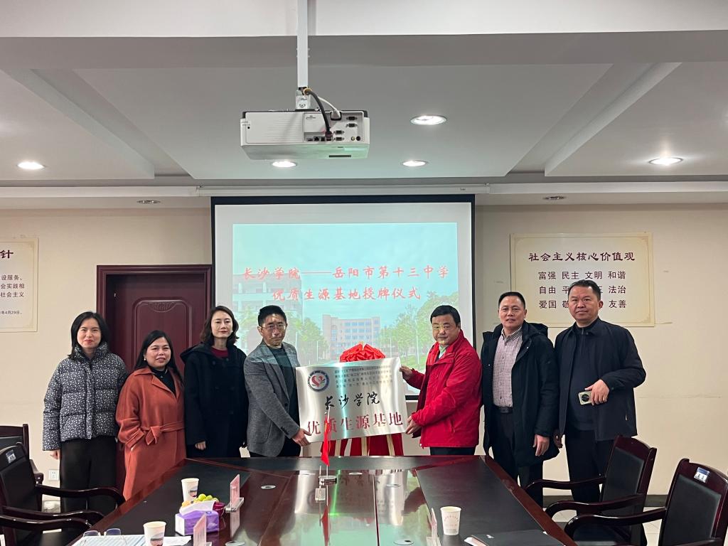 党总支书记张海涛、副书记傅诗贻、办公室主任樊晶、团总支书记柏翀及辅导员肖楚晴一行赴岳阳市第十三中学(以下简称岳阳十三中),开展“奈飞工厂