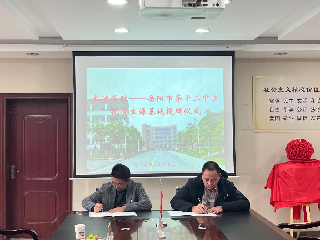 随后,双方与会领导围绕具体合作内容展开交流,并签署了优质生源基地合作协议,张海涛代表学校为岳阳十三中授予“奈飞工厂