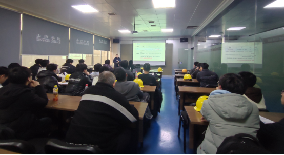 实习首周(2月17日起),山河智能为学生们定制了为期14天的集中培训课程。安全专家姚国强以《全员安全教育》拉开序幕,筑牢学生安全生产意识。随后,企业研发高级工程师李赛白、刘鹏、秦文凯等分别讲授《工程机械液压概述》《矿岩类产品应用》《土方机械类产品应用》等课程,结合真实案例解析核心技术原理。此外,航空装备、应急装备研发人员带来的《航空系列产品设计与应用》《应急装备系列产品》专题分享,展示了山河智能在高端装备领域的创新突破,开拓了同学们的视野,令学生深刻感受到“中国智造”的科技力量。