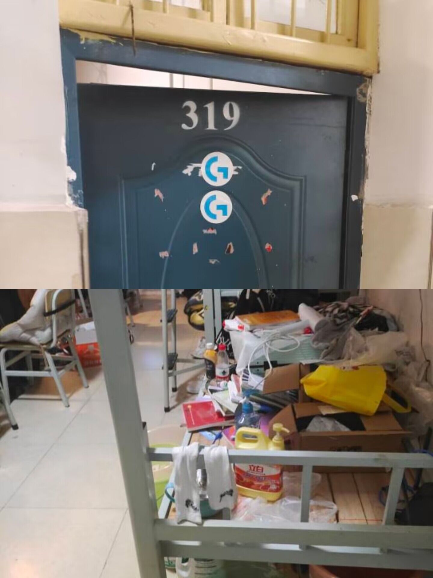 洪山10栋319(22级男生宿舍)空床位上东西摆放不整齐,随意摆放