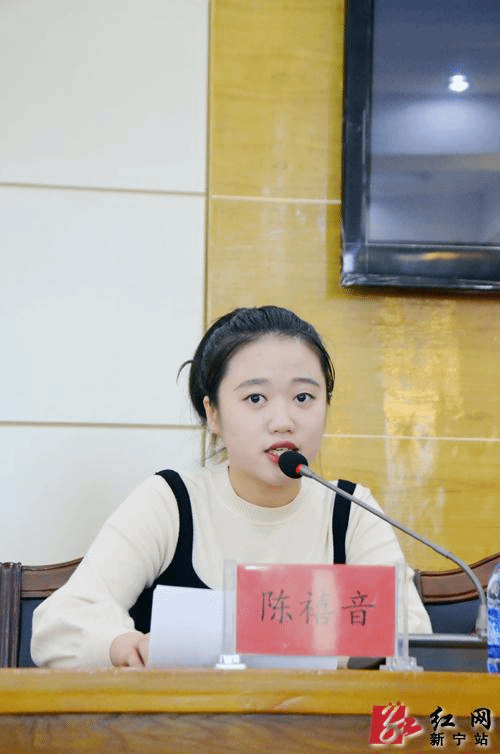 图为湖南省妇女儿童基金会禧音善行项目发起人、湖南中医药大学中医学院大四医学生陈禧音发言。