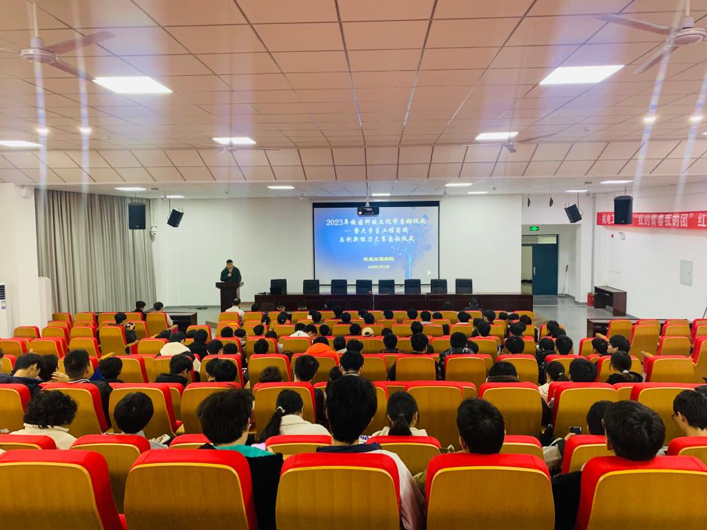 2023年校园科技文化节正式启动,并为比赛带队老师刘驰授予院旗。“3月24日清晨,刘驰老师将带领45名同学前往岳阳参加2023年湖南省大学生工程实践与创新能力大赛,祝愿他们取得好成绩。”张书记说。