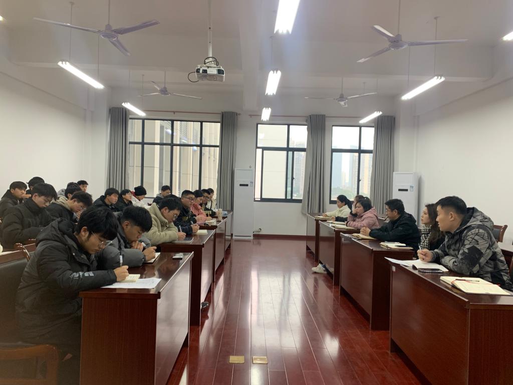 图1:2月14日上午,学院在长智楼C301召开19级全体学生干部会议